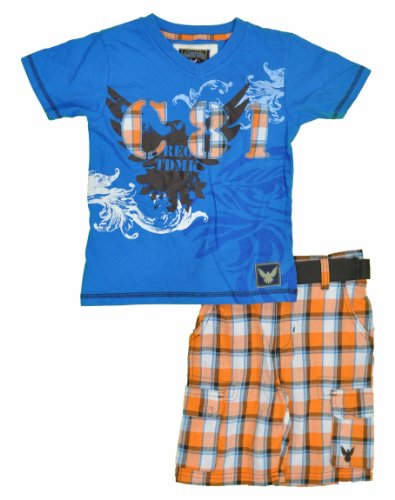 Company 81 boys set features: short-sleeve t-shirt with design on front with matching plaid shorts with matching belt. Read more customer reviews ...